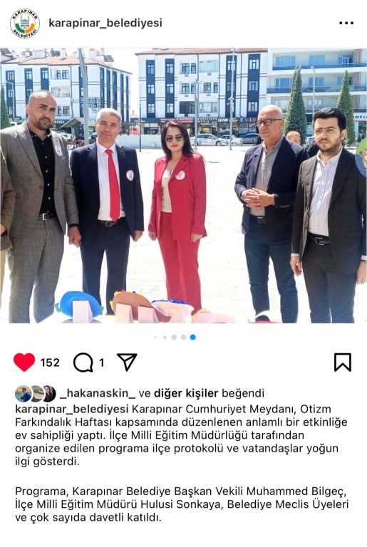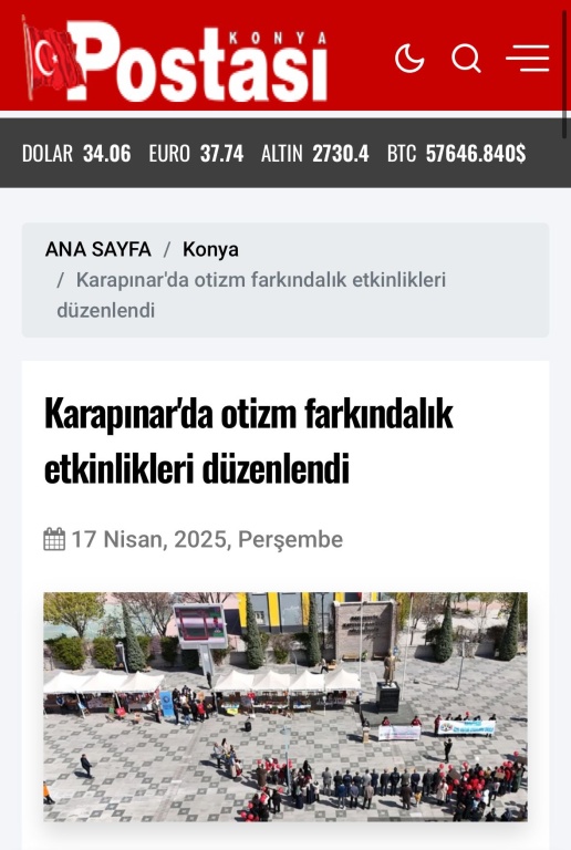 17 Nisan 2025 Tarihinde Okulumuzun öncülüğünde İlçe Milli Eğitim Müdürlüğümüzce düzenlediğimiz otizm farkındalık ayına yönelik etkinliğimizi gerçekleştirdik. Etkinliğimize İlçe Milli Eğitim Müdürümüz Sayın Hulusi SONKAYA ve diğer protokol üyelerimiz ve Karapınar halkımız katılmıştır.